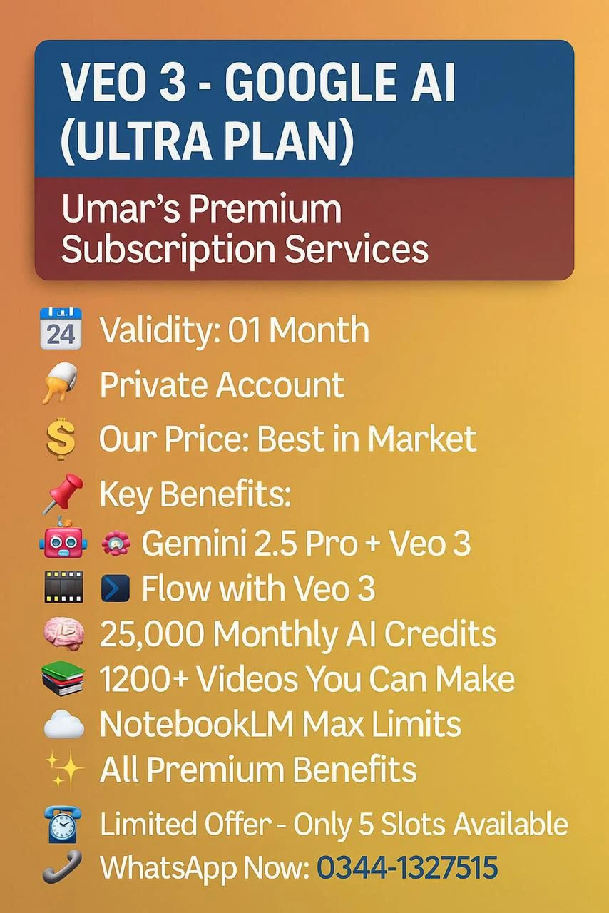 VEO 3 - GOOGLE AI (ULTRA PLAN) -Private